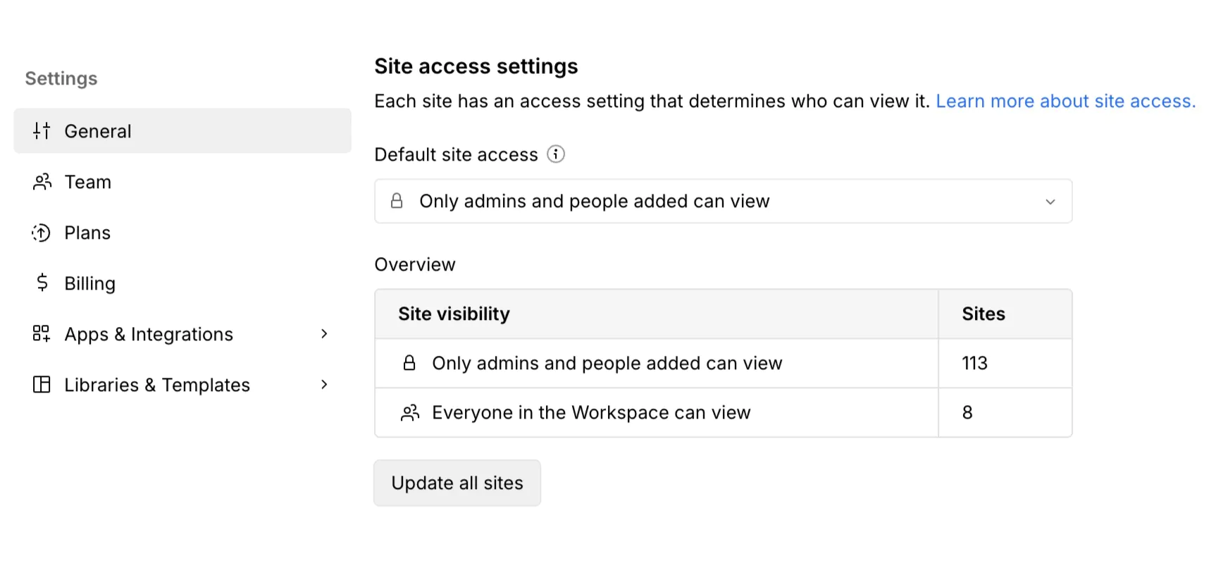 Tip: Can't select a specific site? Ensure that the 'default site access' dropdown is set to 'Only admins and people added can view'.